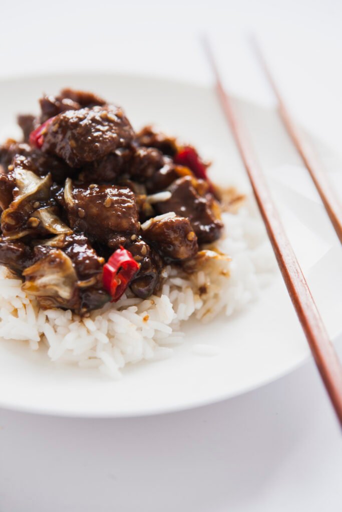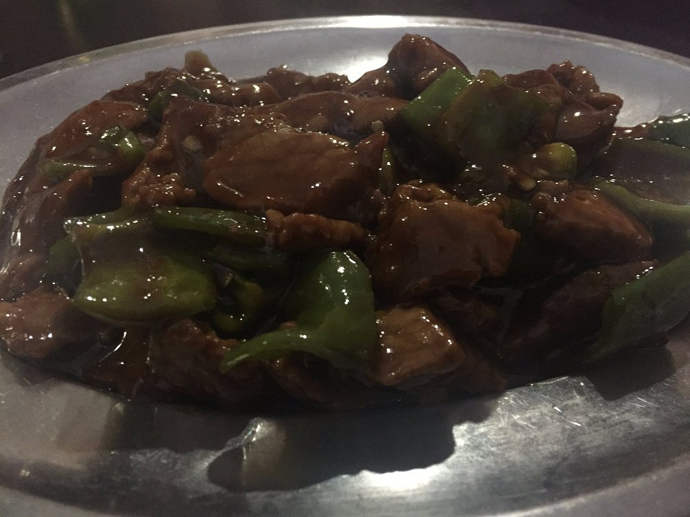 Ternera tierna salteada al wok con pimientos frescos y una salsa suave de soja.
